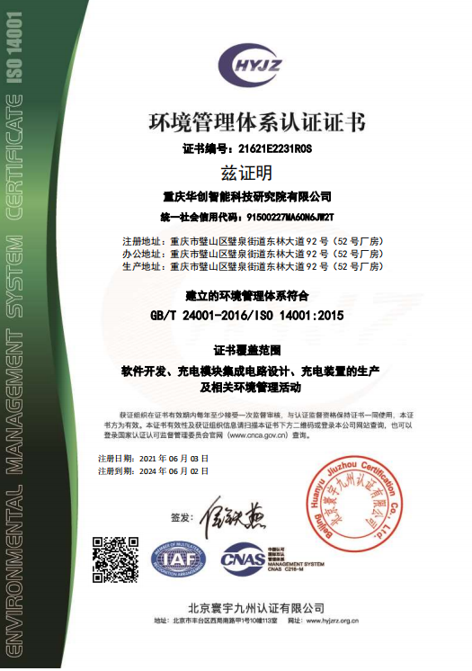 環境管理體系認證證書