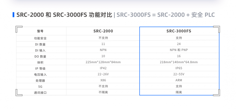 那么 SRC-3000FS 相比于 SRC-2000 的升級點在哪里呢?看這張圖就能快速理解:SRC-3000FS = SRC-2000 + 安全“PLC”。