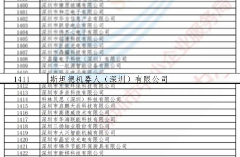 斯坦德機(jī)器人上榜2021年度深圳市“專精特新”中小企業(yè)名單