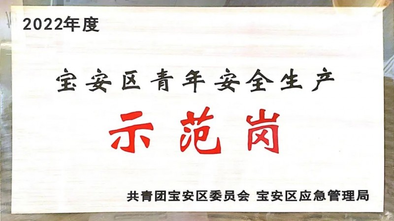 榮獲“寶安區(qū)青年生產(chǎn)示范崗”稱號,踐行安全為先,品質(zhì)為王!