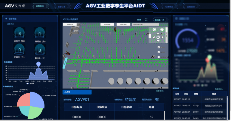 然而,小A的故事還沒有結(jié)束。基于艾吉威免費贈送的數(shù)字化工廠AIDT(艾吉威工業(yè)數(shù)字孿生)平臺,小A可以做一些維護保養(yǎng)的事項。該平臺可采集每輛小千斤的所有信息,包括故障、速度、電量、任務(wù)等,可實現(xiàn)對所有機器人產(chǎn)品的實時監(jiān)控與故障排查,真正實現(xiàn)小千斤產(chǎn)品的遠程運維。