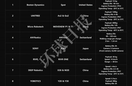 • 世界十大智能機(jī)器狗發(fā)布,五家中國企業(yè)上榜,“杭州四小狗”占領(lǐng)三席