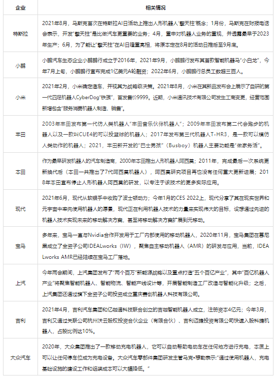 事實上,除了一眾新能源車企“入局”機器人外,傳統(tǒng)汽車廠商們也在通過投資、入股、自主研發(fā)等方式布局機器人。