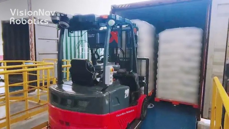 傳統(tǒng)廂式貨車的裝車,一般是由人工叉車將貨物運送到月臺,再由工人將貨物碼放到車廂內(nèi),這樣的作業(yè)流程不僅耗費大量的人力物力,也存在一定的安全隱患。未來機器人在面對貨柜車裝卸場景時,采取讓叉車完全駛?cè)胲噹M行裝卸的方案,直接免去人工作業(yè)。當無人叉車駛?cè)胴浌褴囓噹麅?nèi),通過3D感知激光對貨柜車內(nèi)壁以及貨物進行動態(tài)檢測,感知精度可達≤±10mm,媲美人工作業(yè)。
