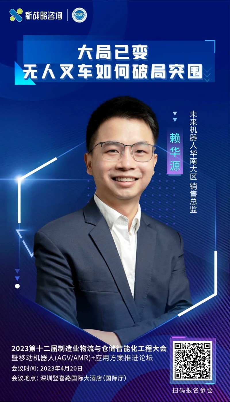 4月20日,在由新戰(zhàn)略移動機(jī)器人以及新戰(zhàn)略咨詢聯(lián)合主辦的“2023第十二屆制造業(yè)物流與倉儲智能化工程大會“上,未來機(jī)器人華南大區(qū)銷售總監(jiān)賴華源將帶來“大局已變,無人叉車如何破局突圍”主題演講,敬請關(guān)注!