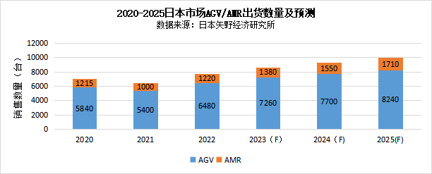 圖表:2020-2025日本市場AGV/AMR出貨數量及預測