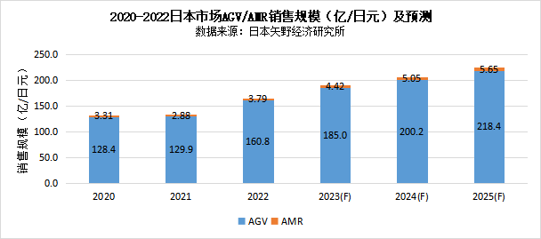 圖表:2020-2022日本市場AGV/AMR銷售規模(億/日元)及預測