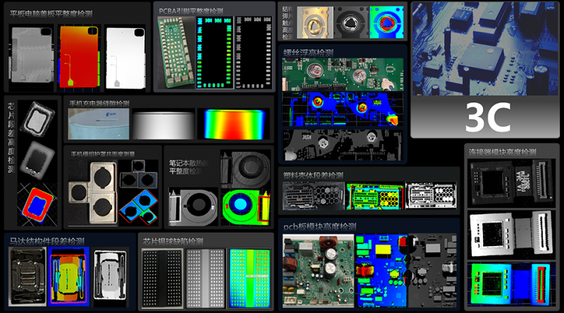 海康機器人3D激光輪廓傳感器基于激光三角測量原理,通過硬件內置的高精度3D算法,實時輸出高幀率、微米級精度的點云數據、深度圖和亮度圖數據,廣泛適用于3C、鋰電、汽配、光伏等行業中3D測量及檢測場景。