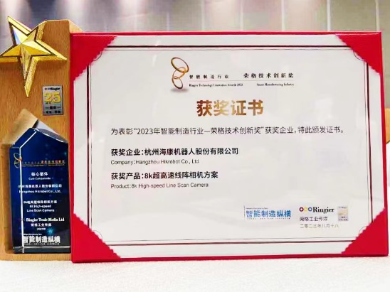 近日,2023智能制造產業發展大會與2023年智能制造行業——榮格技術創新獎頒獎典禮在蘇州隆重舉行。經過業內權威專家進行評審,??禉C器人憑借8k超高速線陣相機方案,在智能制造行業的創新技術中獲得“2023年智能制造行業——榮格技術創新獎”。