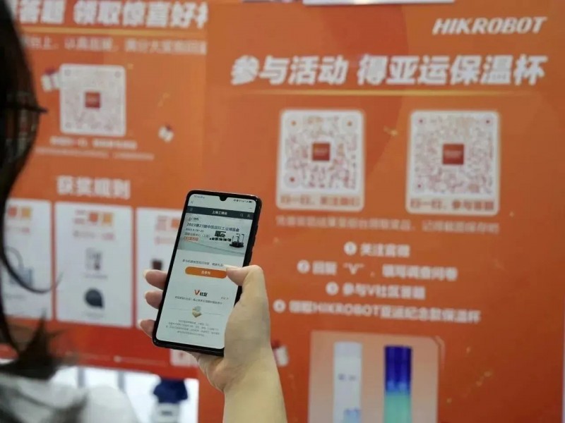如果您還沒有盡興,那現場活動一定可以讓您滿載而歸,海康機器人V社區是專為機器視覺開發者和技術愛好者打造的分享交流平臺,匯聚了上萬個機器視覺從業者,致力于幫助大家快速入門機器視覺行業,共建機器視覺生態。大家可以現場掃碼注冊V社區并參與展品相關的知識問答,贏取豐厚大禮,可不要錯過呦!現場除了掃碼答題互動,參與問卷填寫就能帶走亞運會專屬紀念保溫杯,禮品有限先到先得!