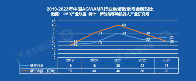 根據(jù)CMR產(chǎn)業(yè)聯(lián)盟數(shù)據(jù),新戰(zhàn)略移動(dòng)機(jī)器人產(chǎn)業(yè)研究所統(tǒng)計(jì),2023年,中國(guó)AGV/AMR領(lǐng)域共發(fā)生25起融資事件,融資總額累計(jì)超過(guò)20億元。相較于2022年行業(yè)整體融資大幅減少,資本市場(chǎng)漸趨冷淡。