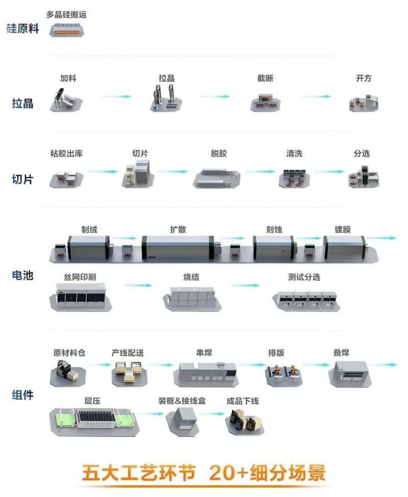 目前,海康機(jī)器人已打造覆蓋光伏五大工藝環(huán)節(jié)20+細(xì)分場(chǎng)景的方案,驅(qū)動(dòng)光伏產(chǎn)能與品質(zhì)雙升級(jí)。