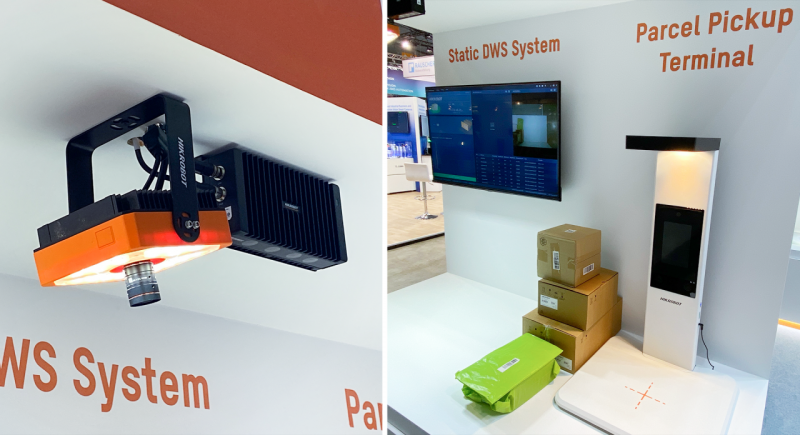 該區(qū)域展示了海康機(jī)器人靜態(tài)DWS方案:在物流信息收集過(guò)程中無(wú)需人工干預(yù),可以自動(dòng)收集基礎(chǔ)數(shù)據(jù),適用于多種類型(如黑色、高反光、薄片、異形件等)包裹的體積測(cè)量。