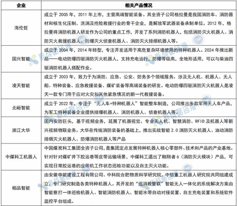 圖表:中國市場部分消防機器人企業