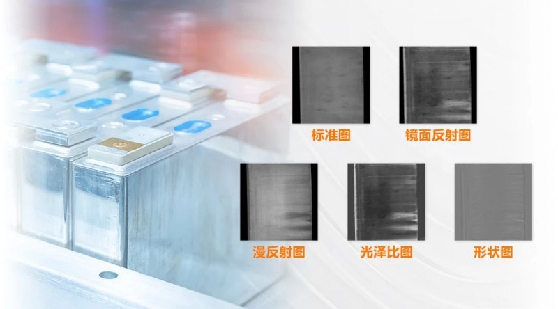 海康機(jī)器人高速線陣2.5D成像系統(tǒng)能完美適配鋰電生產(chǎn)的高速場(chǎng)景,同時(shí)消除電池鋁殼、覆膜和金屬蓋板高反光和背景顏色對(duì)缺陷的干擾,在復(fù)雜樣品表面特征中準(zhǔn)確抓住凹凸缺陷,配合多種結(jié)果圖對(duì)缺陷進(jìn)行區(qū)分。