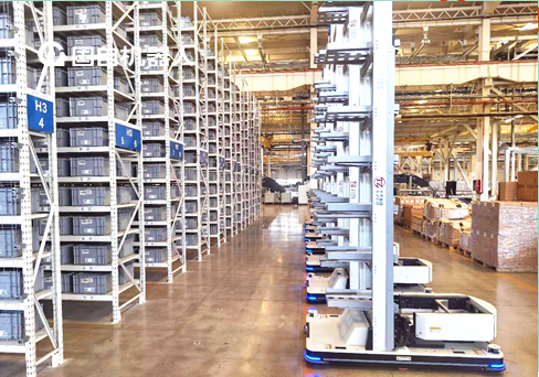 國(guó)自機(jī)器人采用大件、中件、小件、標(biāo)準(zhǔn)件四種物料分類方式,大、中件采用地堆庫(kù)、小件采用立體庫(kù)+部分地堆庫(kù)、標(biāo)準(zhǔn)件采用立體庫(kù)的存儲(chǔ)方案,通過多類型潛伏頂升式移動(dòng)機(jī)器人ANTS、多層料箱揀選機(jī)器人PICKING及重載搬運(yùn)機(jī)器人,自動(dòng)對(duì)接料架、托盤、料箱等多種載具。RCS調(diào)度系統(tǒng)通過算法優(yōu)化,實(shí)現(xiàn)全場(chǎng)多數(shù)量、多類型AGV互相協(xié)作、統(tǒng)籌調(diào)度,用多種叫料方式結(jié)合存儲(chǔ)與揀配策略,實(shí)現(xiàn)物料智能配送,全面提高全廠物流效率。