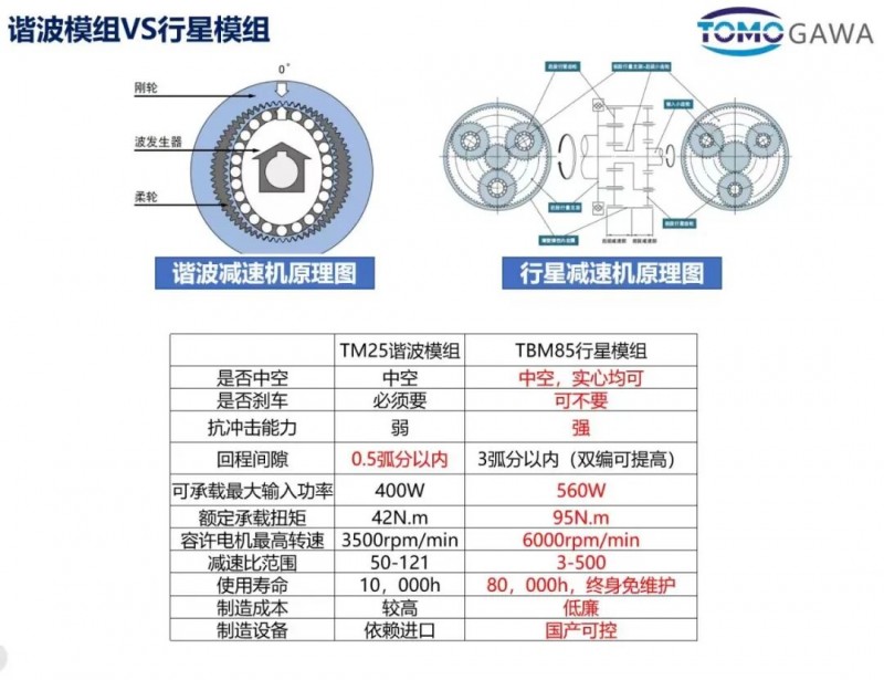 在這一點上,行星方案的特性逐漸顯現(xiàn)。相較諧波和擺線方案,行星減速器在傳動效率、剛性和抗彎能力上更具優(yōu)勢,更高的傳動效率意味著更低的發(fā)熱水平,也為后續(xù)的壽命和穩(wěn)定性留出了空間。同時,其加工和制造對設(shè)備的依賴度相對較低,國產(chǎn)設(shè)備即可滿足生產(chǎn)需求,使其在成本控制和規(guī)模化擴(kuò)展方面具備更高彈性。