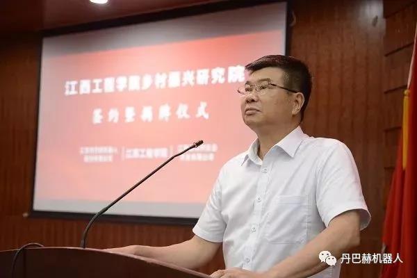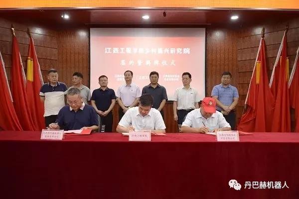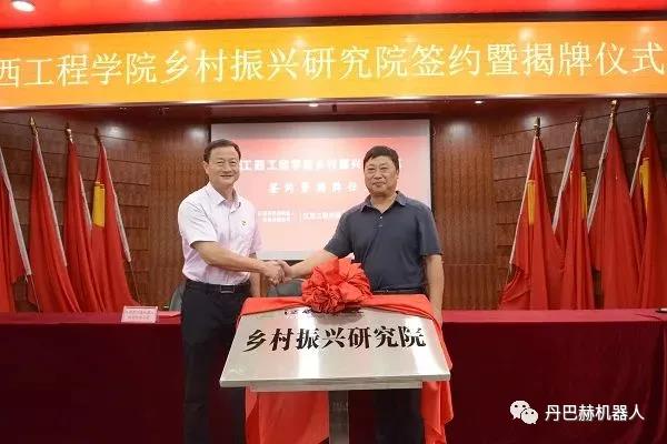 隨后,江西丹巴赫機器人股份有限公司與江西工程學院、江西東樹農業科技發展有限公司簽署了合作協議,并由江西省科技廳領導共同為鄉村振興研究院揭牌。