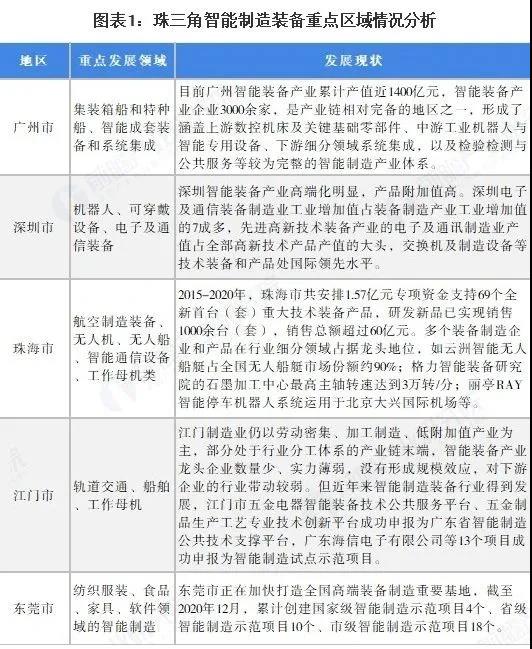 珠三角地區(qū)的智能制造裝備業(yè)主要分布在廣州、深圳、珠海和江門等地。其中,廣州市是國(guó)內(nèi)最大的大中型集裝箱船和特種船建造基地;江門市是未來(lái)軌道交通行業(yè)領(lǐng)域的重要基地,珠海市依托珠海機(jī)場(chǎng)而建的珠海航空產(chǎn)業(yè)園涵蓋了航空制造業(yè)、服務(wù)業(yè)和臨空產(chǎn)業(yè),是廣東省發(fā)展通用航空制造、維修及運(yùn)營(yíng)服務(wù)產(chǎn)業(yè)的唯一載體,已形成了“珠海航展”的知名會(huì)展品牌;深圳市正著力建設(shè)華南地區(qū)數(shù)控系統(tǒng)技術(shù)研究開發(fā)中心,大力發(fā)展工業(yè)機(jī)器人和機(jī)械手的研發(fā)與生產(chǎn)。