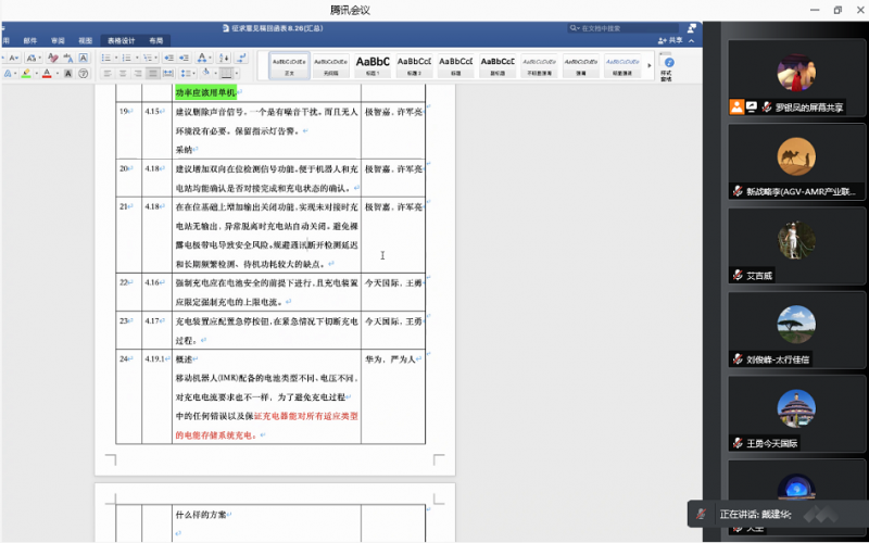 會上,就《工業(yè)應(yīng)用移動機器人  配套件應(yīng)用技術(shù)規(guī)范-充電裝置》初稿進行討論,每家企業(yè)以及專家都提出了各自修改意見,對標準的修改意見進行了重點討論并達成一致。同時各位專家也闡述了標準技術(shù)內(nèi)容、關(guān)鍵問題處理、與現(xiàn)行有關(guān)的國家標準的差異等,并建議工作組根據(jù)專家審查意見對標準進行修改完善,盡快形成送審稿,報請CMR產(chǎn)業(yè)聯(lián)盟聯(lián)盟團體標準管理委員會發(fā)布實施。