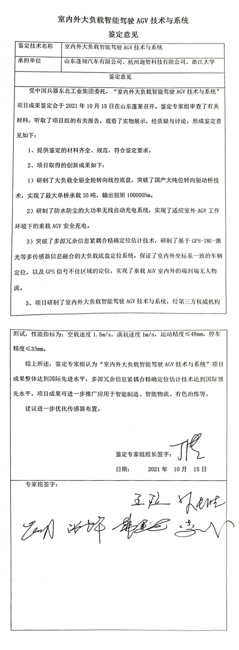 核心提示:丁漢院士領銜的國家級評審團對蓬翔汽車重載AGV給出中肯評價。