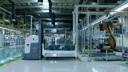 圖:新松叉車AGV發動機工廠應用