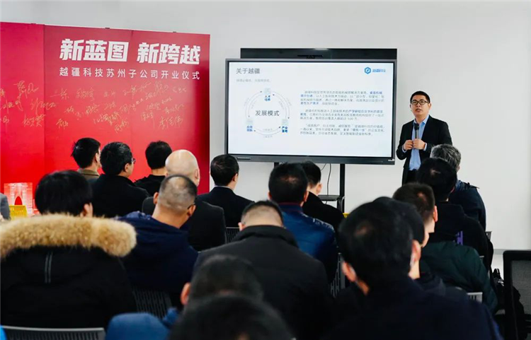 開業典禮上,深圳市越疆科技有限公司董事長兼CEO劉培超、越疆智能機器人(蘇州)有限公司總經理劉主福、深圳市越疆科技有限公司工業事業部副總經理劉曉明、深圳市越疆科技有限公司工業事業部商務運營總監李劉偉共同為越疆科技蘇州子公司揭牌剪彩。