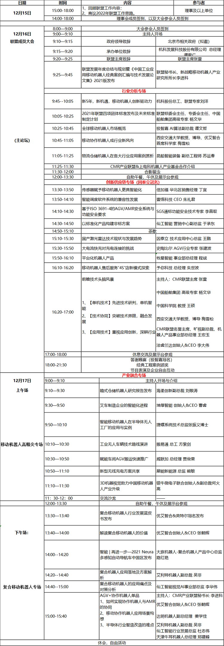 12月15-17日,由中國移動機(jī)器人(AGV/AMR)產(chǎn)業(yè)聯(lián)盟主辦的“2021 中國移動機(jī)器人(AGV/AMR)行業(yè)發(fā)展年會”將在北京舉行,敬請期待!CMR產(chǎn)業(yè)聯(lián)盟年會,是一年中最為重要的行業(yè)會議,會聊宏觀經(jīng)濟(jì)的走勢,做到自上而下的研判;會討論投資策略,以及風(fēng)險(xiǎn)規(guī)避;會聊產(chǎn)業(yè)發(fā)生的趨勢變化、探討行業(yè)問題等。年會是打開視野、提升認(rèn)知、抓基調(diào)、定主線的重要時刻。期待每一位與會嘉賓的真知灼見。