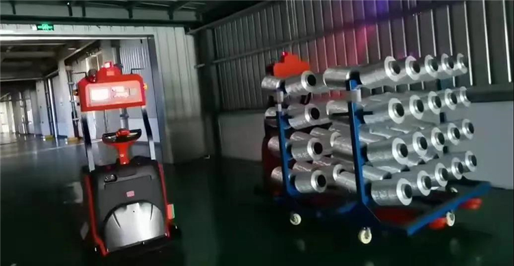 曹睿表示,紡織業的物料搬運較為復雜。其原料、成品和半成品體積大,密度小,組織蓬松柔軟,形態不穩定。在各工序之間搬運時,輕微的碰撞和摩擦都有可能造成外形損傷。此外大多物料都需要卷裝運輸,這些卷裝載具,都需要特殊定制。基于紡織業物料及載具的特殊性,叉車式AGV需要確保運行的穩定性及定位的精確度,叉車AGV的支腿需要進行特殊定制,匹配卷裝載具。