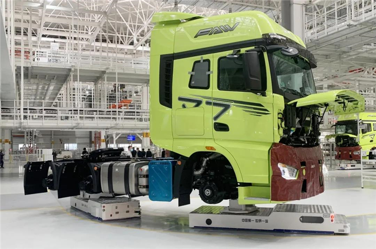 ▲ 一汽解放J7重卡亮相智能工廠落成投產儀式