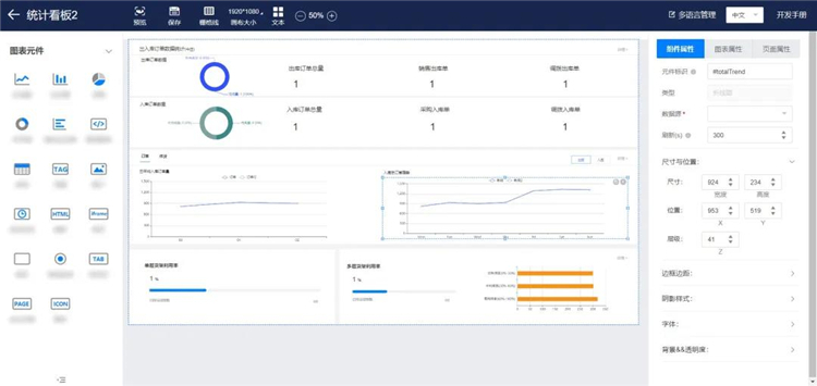 數(shù)據(jù)可視化組件DataView,通過靈活配置數(shù)據(jù)源和圖形化拖拽配置頁面布局,實現(xiàn)業(yè)務(wù)數(shù)據(jù)的可視化展示,快速響應(yīng)管理界面修改、統(tǒng)計報表展示等需求。