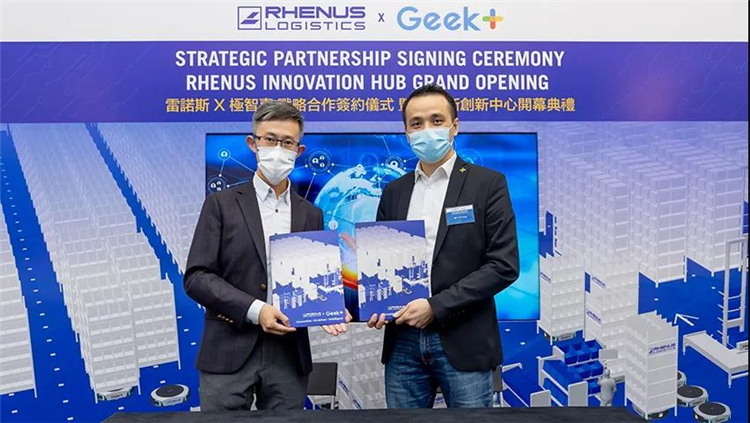 ▲ Rhenus大中華區(qū)倉(cāng)儲(chǔ)方案及配送董事總經(jīng)理麥榮軒(左)與極智嘉亞太、英國(guó)和美洲地區(qū)副總裁馮家浩(右)