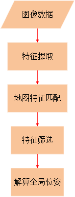 紋理導航算法首先對相機采集的圖像進行視覺特征提取,這里的視覺特征主要指點、線及結構特征等;然后,算法會將提取得到的特征與導航地圖庫中的特征進行匹配、篩選,得到地圖庫中對應的匹配特征,根據兩對特征的相互映射、轉換關系解算實時全局位姿,完成AGV設備的導航定位。