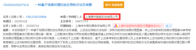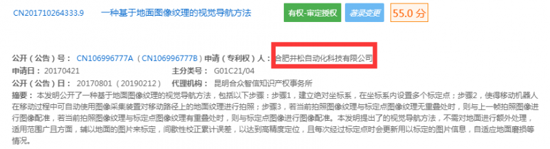 新戰略移動機器人產業研究所通過專利檢索發現,目前該導航方式為發明專利,主要專利人為合肥井松自動化科技有限公司與上海懶書智能科技有限公司所有,發明人均為劉詩聰。