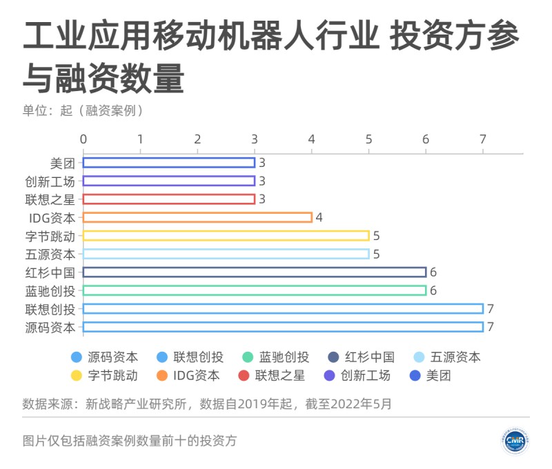 圖片:工業(yè)移動機(jī)器人行業(yè)十大資本方參與融資情況【統(tǒng)計時間為2019年-2022年5月,不完全統(tǒng)計】