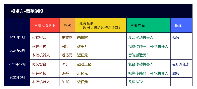 圖:移動機(jī)器人行業(yè) 藍(lán)馳創(chuàng)投融資事件一覽